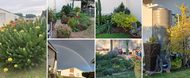 One such resident is Moira Boshoff, who moved to Cassia Gardens in 2018. Coincidentally her cottage was previously occupied by Bob and Joyce Zeiss! Moira has created lovely beds of flowers and succulents, and she has a productive vegetable garden too. Birds and bees are attracted to her trees and plants, water and feeders. There are also two garden benches where she (or fellow residents) can sit in shade and enjoy the gardens, or soak up the view of distant hills and blue sky.