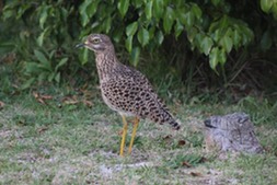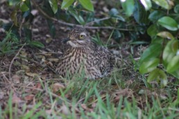 Bird-wise, well established residents are a pair of Thick-knee(once known as Spotted Dikkop-Burhinus capensis-or Gewone Dikkop). A pair was first spotted (excuse the pun) nesting at the back of Jill McKenzie’s cottage some years back; they produced several offspring over time but few chicks, if any, appeared to survive, perhaps due to the presence of crows or cats in the area.