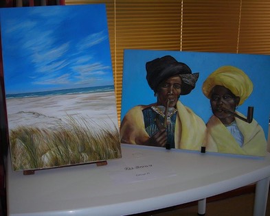 The following photographs attempt to do justice to the truly amazing display of arts, crafts, hobbies and interests of our villagers. These ranged from needlework of all kinds through wood-art, model ships, trains and planes, home-made cakes and pickles, cuddly toys, jerseys, beanies and blankets, jewellery and paintings. Oh what paintings!! Big ones and small ones, seascapes, landscapes, still life and people.