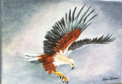 Jean had artists among her relatives, but she only took up painting when she turned sixty. She concentrates on oils, and chooses the African bushveld as her favourite subject matter.