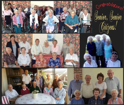 The collage (with thanks to our roving village photographers), created by our obliging printing/layout expert Michele from CopyShop, depicts many of our Nonagenarians, as well as our Centenarian, and two members of staff.