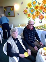 Otto and Natalie Kiessig joined in the fun at the Spring tea at Maranatha. The colourful wall decorations were made for the occasion by the Frail Care residents.