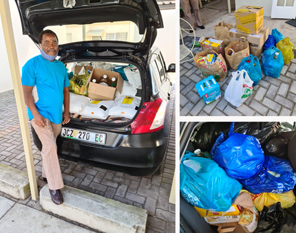 These photos show some of the collected foodstuff items handed over to Mongameli Peter, the Programs Director at Ekuphumleni. In addition, a whopping R21530 was donated by residents and others, added to by MHA, and that money has been used to pay a wholesaler for a huge consignment of foodstuffs and healthcare essentials, all destined for the Home.